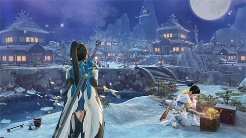 雪落神州,沐雪同行!《梦幻新诛仙》冰雪节现已开启,漫天飞雪下,河阳城早已银装素裹!道友们,还等什么?快邀上三五好友前去观雪景、趣同游吧!