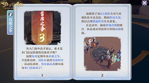 首先,“首席之争”三人PVP玩法正式上线,道友可以在每周五晚间组成三人队伍参加比武,通过战斗赢取武勋和积分,最终每个门派积分最多队伍的队长将称为本派的“首席大弟子”赢得特殊称号,并作为特殊NPC出现在门派驻地和“八门金锁阵”中!