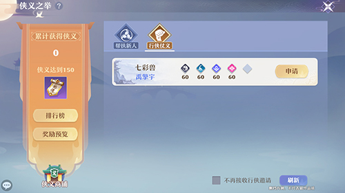 手游时代,我们希望玩家的游戏体验更轻松,更舒适,能够更快掌握游戏技巧。“千里缘梦”测试优化了新手引导,降低了前期的战斗难度,增加周赏任务,让新人更好入坑,并增加“侠义之举”系统,帮助出入神州的新人战斗能兑换珍贵资源,促进“老带新”的良性玩家生态的形成;