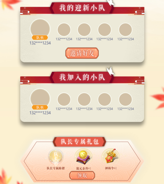 除了公会的成团招募,希望和三两知己好友共同探索神州浩土的道友也可以参加迎新小队招募,集结成功同样有限定称号和众多福利哦~