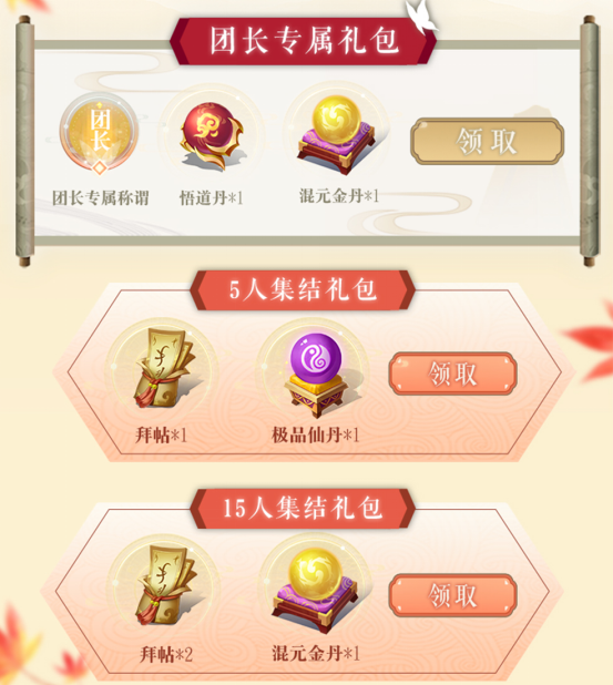 集结固定队,招募公会,赢取多重豪礼,限定称号、海量道具、豪华大礼包等你来拿!无论是集结队友、创建属于你的公会,还是与好友共游神州浩土,都有惊喜福利在等着你!