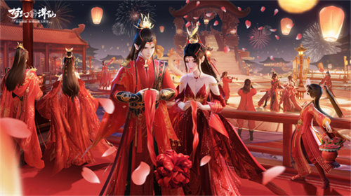 十里红妆,嫁衣如火!《梦幻新诛仙》首届集体婚礼开场,放烟花、吃喜糖、抢红包每一个环节都有奖励!婚礼将分为花车巡游、入场签到、情缘拜堂、放烟花、抢红包、情缘匹配六个阶段,每个阶段都可获得奖励!没有报名但前来观礼的道友都将有同喜的机会,捡喜糖、放烟花、抢红包都能获得额外奖励哟~