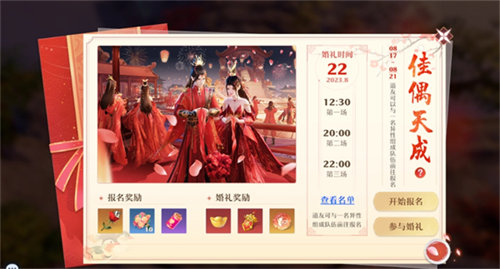 8月22日七夕节当天将会开启3场集体婚礼,分别是12:30、20:00、22:00!道友可在报名时按需选择心仪的时间段,邀请神州众人将见证你的婚礼!仙盟更将为所有礼成的道友奉上珍贵的“婚礼纪念册”,作为有情人的良缘见证!道友在结束集体婚礼后,还可以随时打开纪念册重温美好的礼成时刻!宾客见证二人浪漫瞬间,情缘二人行同心礼,从此恩爱不疑,死生不弃!