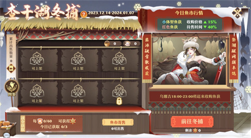 号外号外,捕鱼达人的好消息来啦!元旦小长假,查干湖鱼肥水美又迎丰收,「查干湖冬捕」将出现持续一段时间的惊喜福利升级!12月29日0点至1月3日活动期间每日首次捕鱼出现的鱼儿将必为橙色或红色稀有度!很多勤奋的渔友们已经在活动中捕到了彩蛋“知鱼”,本次更是新增了四种新鱼获和一个神秘捕捞物,等你解锁新图鉴!鱼跃人欢,热闹非凡,年末大放送,鱼儿会带给你哪些惊喜福利?快来下网捕满舱!