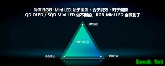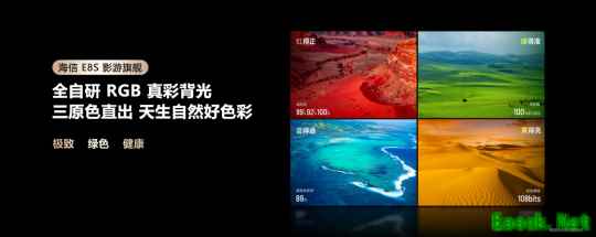 海信E8S的核心优势,源于RGB-Mini LED技术的代际突破,对QD-Mini LED、SQD-Mini LED等单色背光量子点Mini LED技术形成全方位体验碾压,其用户价值集中体现在画质、能耗、健康三大核心维度。