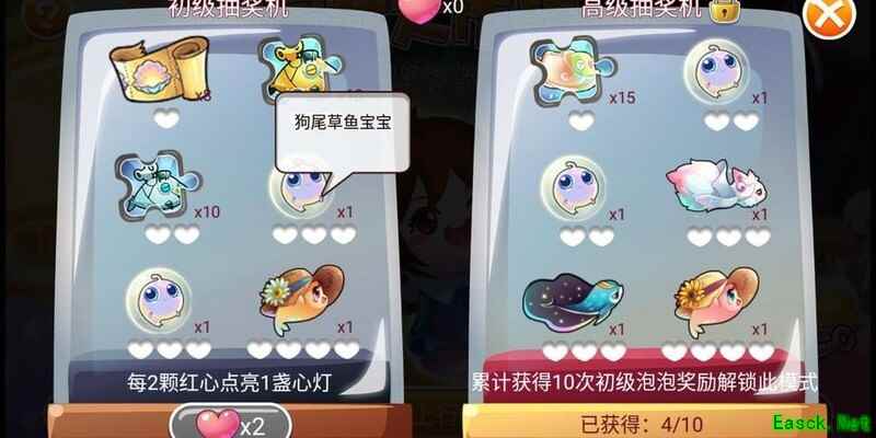 继续用完剩余的球,之前已消耗4个普通和2个高级,成功开启最终宝箱,获得10个消消乐碎片。运气尚可,抽中鱼宝宝,宝石换得爱心,还忍不住小氪了一波买鱼,过程略过不表。