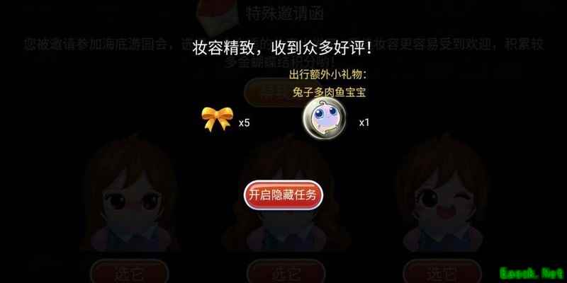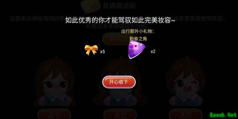 进入信封后选择妆容,任意挑选即可获得金蝴蝶结与海星角,收获海星奖励。