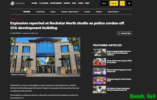 据外媒dexerto报道,爱丁堡消防队正在荷里路德地区应对一起重大紧急事件,Rockstar North大楼已被警方用警戒线封锁。现场人员报告称楼内发生了爆炸。