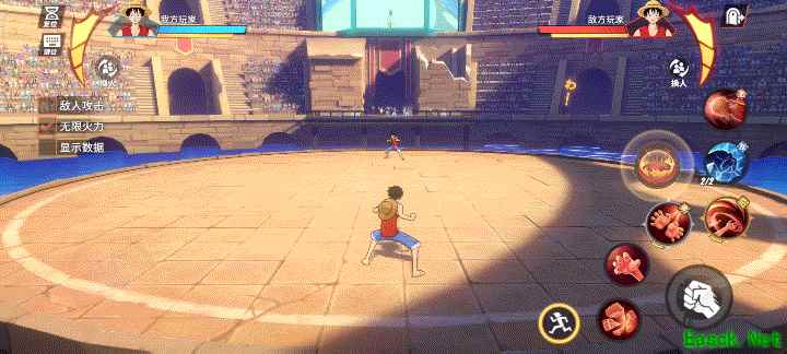 路飞在释放第二个技能后,若能完整打出普攻连段,极易触发对手的防御反击。同理,在小奥义结束后衔接平A打满,也容易被对方防护。但在后续连招中,凭借两个奥义带来的霸体效果,可无视控制持续输出。只要对手在连招前期未使用援助技能或具备强解控效果的激斗技,我们便能将其血量压至仅剩三分之一左右,实现高效压制与击杀。