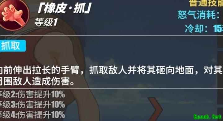 该技能拥有较长的冷却时间,释放时消耗一格怒气,可对前方敌人持续发动快速攻击。使用橡胶乱打后,会以最后一击将对手击飞至远处。技能释放期间处于霸体状态,免疫控制与抓取效果,且伤害输出频率较高,具备较强的连击压制能力。