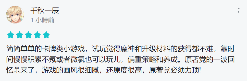 集策略战斗、收集养成、探索等玩法融为一体的《魔神英雄传》手游,游戏体验非常多元化。PVP对战过程中,通过不同魔神的卡面数值升级和卡牌组合方式,能够不同程度地削弱敌人的攻击能力,促使战斗节奏紧凑;同时,轻松策略化的设定使刷关过程不会过于伤肝,魔神魔神的击打特效也能带来沉浸式对局体验。