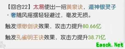 许多人认为此关卡命中率过低,便放弃部分输出技能或增伤机制来堆叠闪避属性。但在我看来,这种做法并无必要。以下是银灵子第十小关第8回合与第22回合中,孔雀缥缈的闪避与攻击力相关数据,供参考。