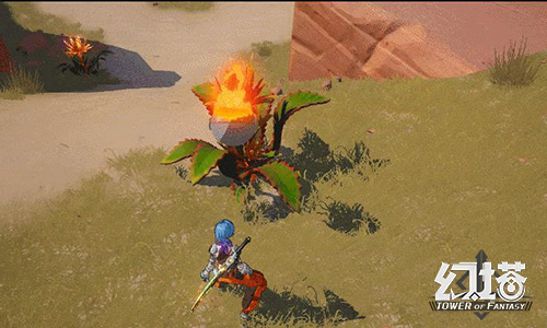 “物理引擎”也是游戏的一大特色。《幻塔》为游戏内的物品、植物、建筑等设计了丰富的交互逻辑,让它们在开阔的地图中自由搭配,产生化学反应。小型敌人可以拿起来投掷,草丛和藤蔓可以被烧掉,交互和解谜结合,形成了参差多态的探索玩法。