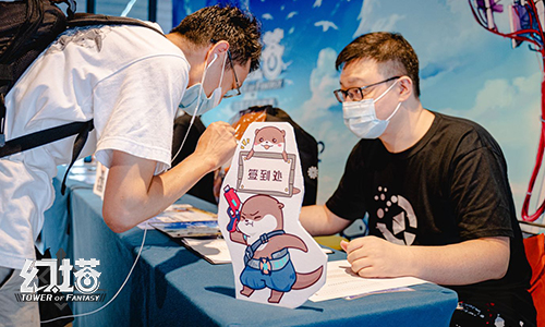 下午,受邀的拓荒者陆续前来签到,直面会现场随处可见《幻塔》元素。