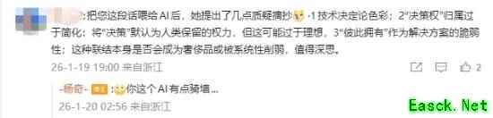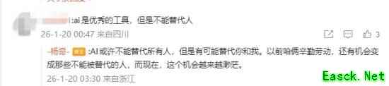 此外面对网友提到的“ai是优秀的工具,但是不能代替人”,杨奇也给出了自己的见解:
