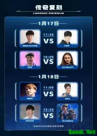 其中三场是经典之战的复刻——2015IEM决赛复刻:悲情无冕之王soO“输本”对阵无情机器暴君INnoVation“吕布”、2018平昌冬奥会决赛复刻:两届WCS冠军sOs“狗哥”对阵没人不爱的刀锋女皇Scarlett“噶姐”、2011GSL决赛复刻:那场七轮血战,最古冠军DRG对阵MMA。