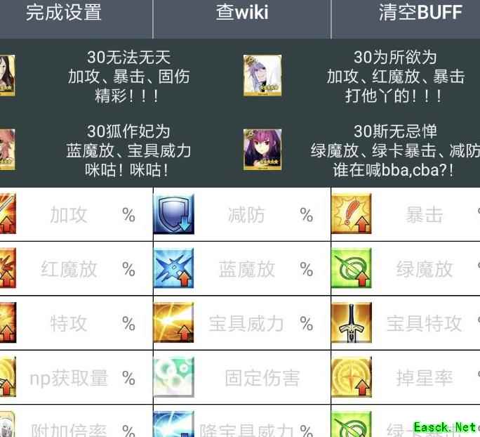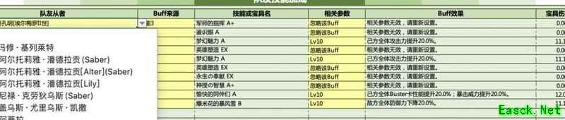 宝具前置的增益效果不会自动计入伤害计算,需在设置中手动添加,例如艾蕾宝具的魔放、黑狗宝具的加攻等增益状态。