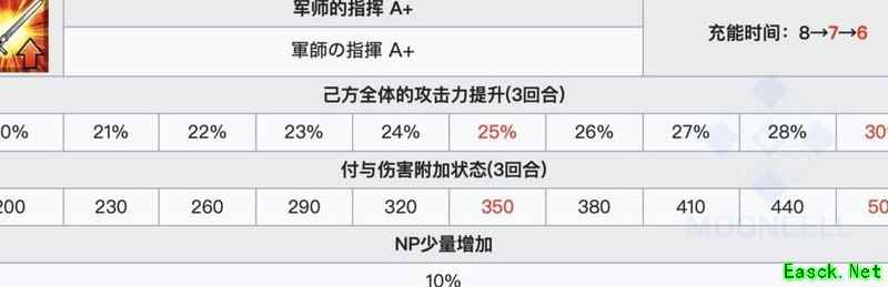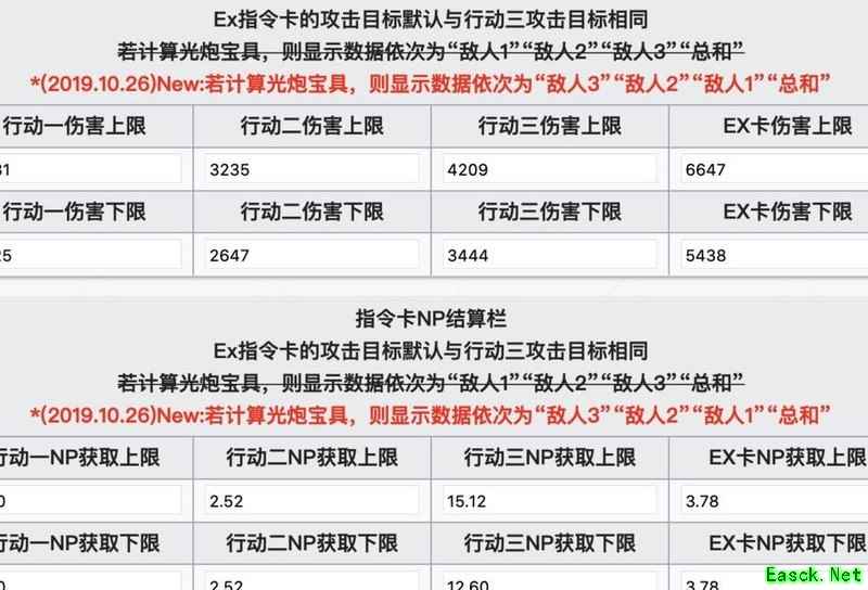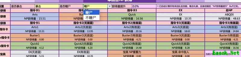 所示的宝具伤害、卡牌伤害与NP获取相关数值。
