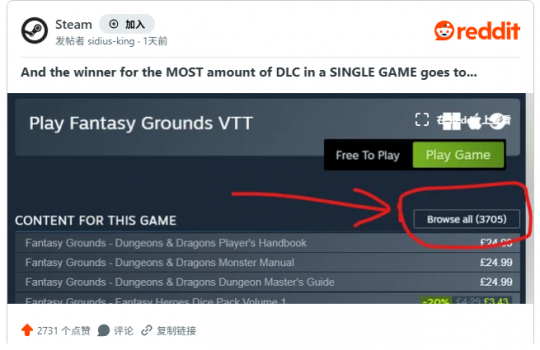 游戏的Mod数量众多,是因为游戏好玩群策群力,然而官方发布的DLC数量众多那就是开发商太闲了?日前有玩家惊叹发现Steam史上DLC最多游戏,发售仅5年竟然多达3705个。