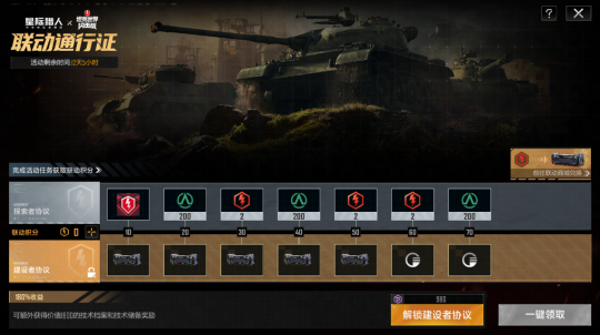 完成每日联动任务,提升“联动庆典通行证”等级,即可免费领取“钢铁洪流”静态徽记、联动庆典纪念币、外观积分等多重好礼。