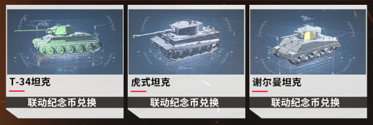 联动期间,可使用联动纪念币免费兑换虎式、谢尔曼、T-34三款经典主战坦克电子手办,让经典坦克在你的拉格朗日银河中永久成列。