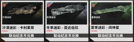 在联动期间,参与各项活动可轻松获取“联动纪念币”,纪念币可免费兑换亚达伯拉、阋神星、卡利莱恩三款舰船的限定迷彩系列礼装,为你的舰船换上来自坦克战场的硬核外观!