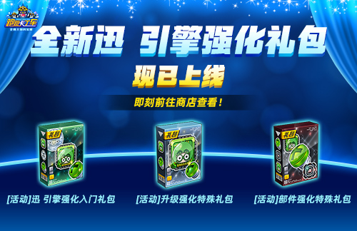 此外,还有包含多种葱头改装升级材料的3种全新迅引擎强化礼包、开启即有机会获得“迅光明爆烈加速器特效(1个)”、“迅 虹光溢彩加速器特效(1个)”的“迅 特殊部件特典箱”一起限时登录游戏内商店,切勿错过!