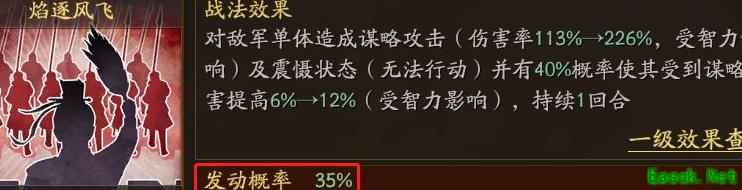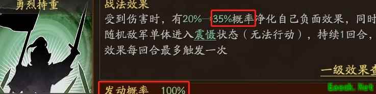 程普主战法勇烈持重的震慑概率为35%,未受伤害时震慑效果无法触发。