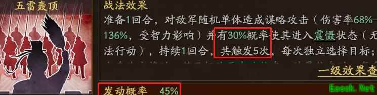两者结合共有58%震慑概率,由此推算每个战法单独触发震慑的概率为29%。