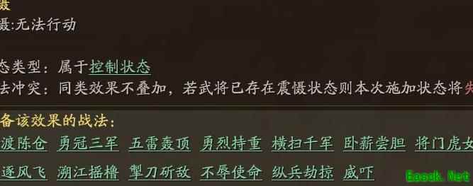 掣刀斫敌与纵兵劫掠均能触发震慑,但震慑效果无法叠加,重复施加将因冲突而失效。两者同时携带时,会因效果冲突导致实际收益降低,并不适宜搭配使用。