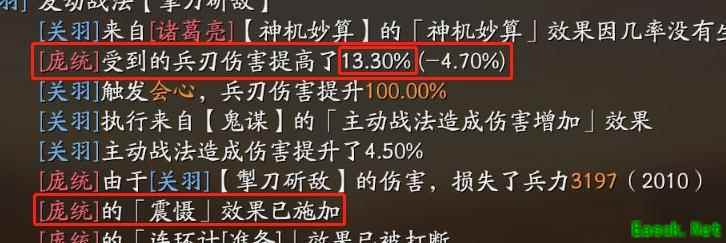 同时搭配这两个战法,可将我方单回合触发震慑的总体概率提升至57.75%。单个战法的实际震慑生效概率由原本的35%下降至平均28.8%,且连续对同一目标施加震慑的可能性较低。
