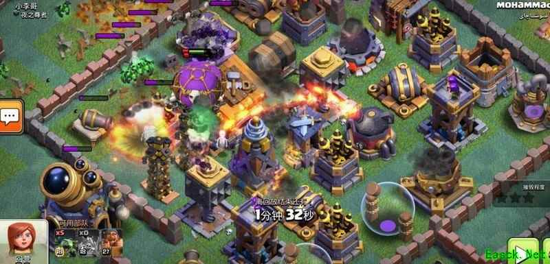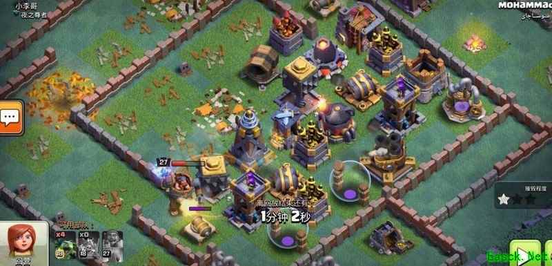 在阵型布局上,整体呈现出良好的包围态势,城墙不仅起到半防护作用,还能有效引导敌军行进路线,打乱其进攻节奏,并使其兵力过度集中而陷入我方克制范围。主要输出建筑均置于中心区域,紧邻大本营,利于核心防御。外围则布置多个资源类建筑,可在敌军进攻初期吸引火力,为内层防御争取输出时间与空间,增强整体防守韧性。