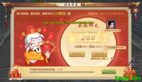 2月1日至3月3日,开年福利活动「财运滚滚来」火热开启。海量绑元拿不停,更可领取喜庆又俏皮的发型【财多多】——让你从年初到年尾,做江湖中最受眷顾的好运之星~