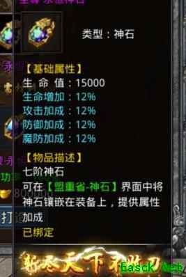 破军神石可提升生命、防御及魔防能力。