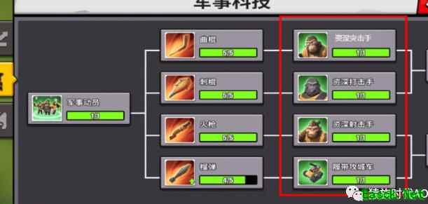 务必尽快解锁军事科技中的T2兵种,包括资深突击手、打击手、射击手及履带攻城车,因其对T1兵种具有压倒性优势。