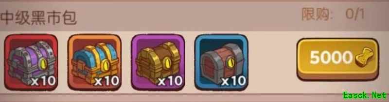 中级黑市礼包值得入手,五千金砖可换810宝箱积分及资源,宝箱周增益显著,性价比高,建议优先购买。