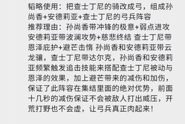 查士丁尼给法骑提供了高强度的免伤支持,而孙尚香+安德莉亚两个追击英雄,也同样可以触发查士丁尼的被动,虽然少了一部分风格加成,但阵容的整体强度无疑是提高了一档。