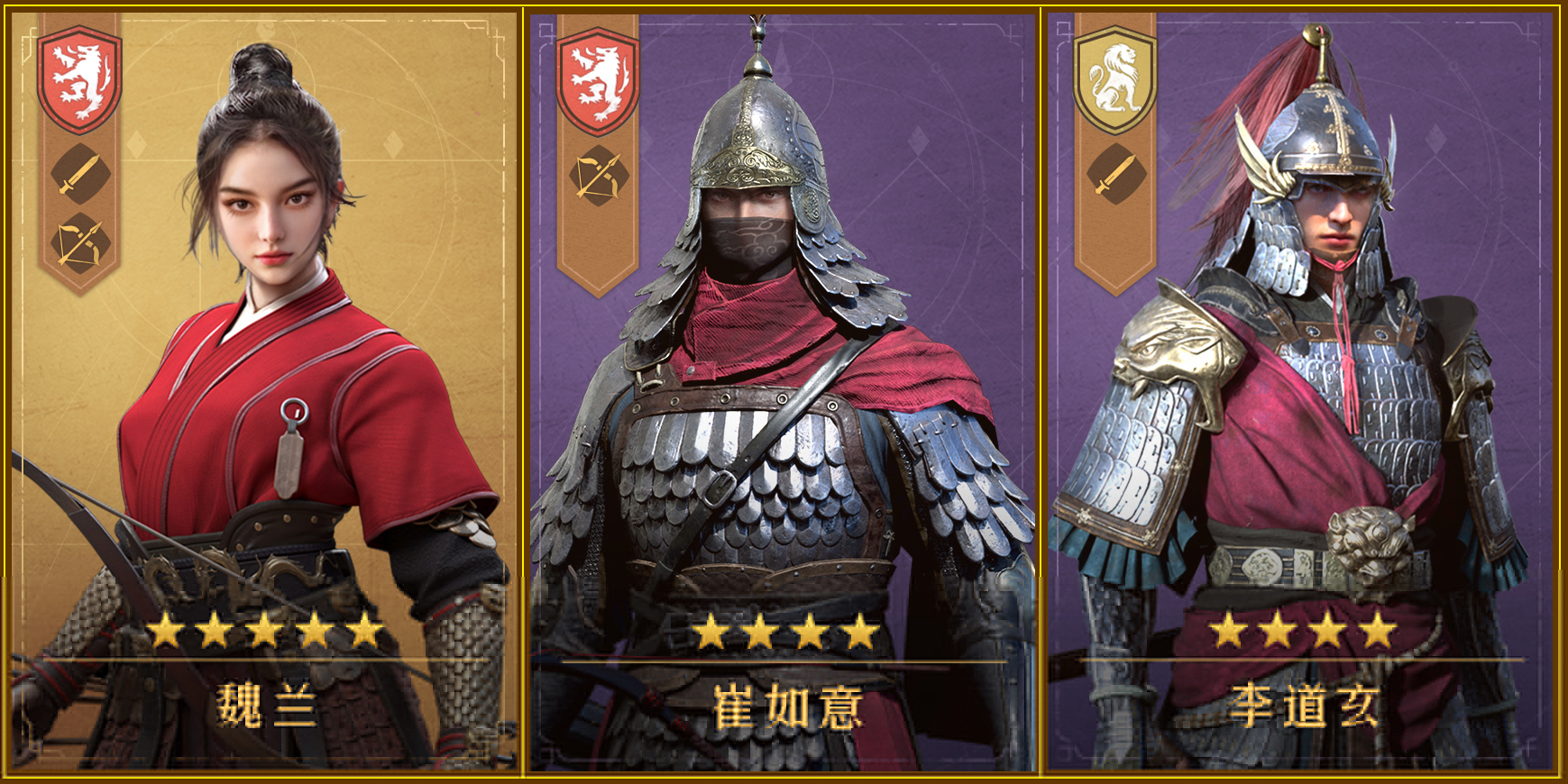 龙胆神将可通过基金领取,武圣和虞夫人可通过首充奖励获取,后期可用假面将军换下虞夫人,组成完全体连击骑。