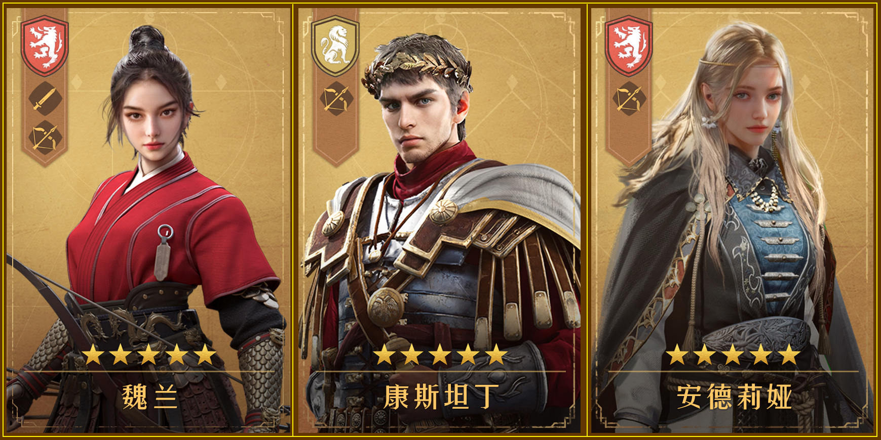 魏兰为引导赠送,确定该弓兵阵容起手时,康斯坦丁可在与琼恩二选一的剧情选择获取,安德莉娅次日签到领取,正好卡在3号位解锁前,不影响阵容组建,后期可用虞夫人换下康斯坦丁,阵容更为完善。