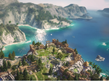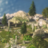 蛮荒时代,主城最高处的残垣断壁,依稀还保留着曾经与蛮族战斗过的痕迹。城内建筑参考的是神庙的梁柱设计,多以一些累叠而成的巨大石柱作为元素,通过错落有致的石阶地面,以及砌缝严密的古旧石墙堆砌成建筑的轮廓。