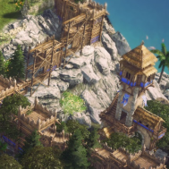 启蒙时代,衍生出了新的城镇功能和战斗模式,城堡开始出现。此时的建筑借鉴了欧洲攻防一体、战居皆备的城堡造型,建筑主元素由木质茅草转为石砌,加上四面高墙设计,让主城有了更优秀的防守能力。同时结合吊门和雉堞塔楼等元素,直接将城堡的战略功能拉满。