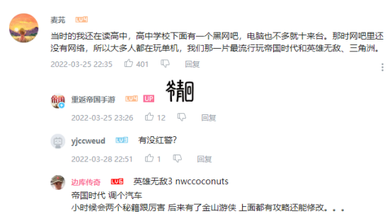 其中【帝国茶话会】我觉得特别有意思,能科普不少历史和冷知识。很多B站视频的评论区也有大量的情怀老玩家在回忆自己的青春,点赞都特别高!让我对游戏又加深了一层不错的印象。