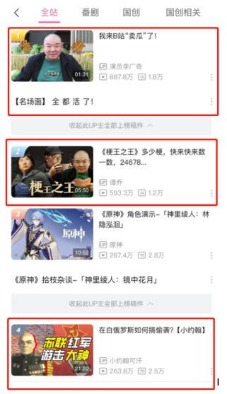 另外官方也挺会搞事情,赞助的几部合作内容也席卷B站各个榜单,播放排行榜前四占了3个,整个B站被《重返帝国》霸榜了!没看过的人可以去看看。