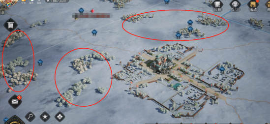 最后,我发现城市附近,都设计了好多树林。 部队进入树林后,敌人是没有视野的,突然有了很大胆的想法有木有?