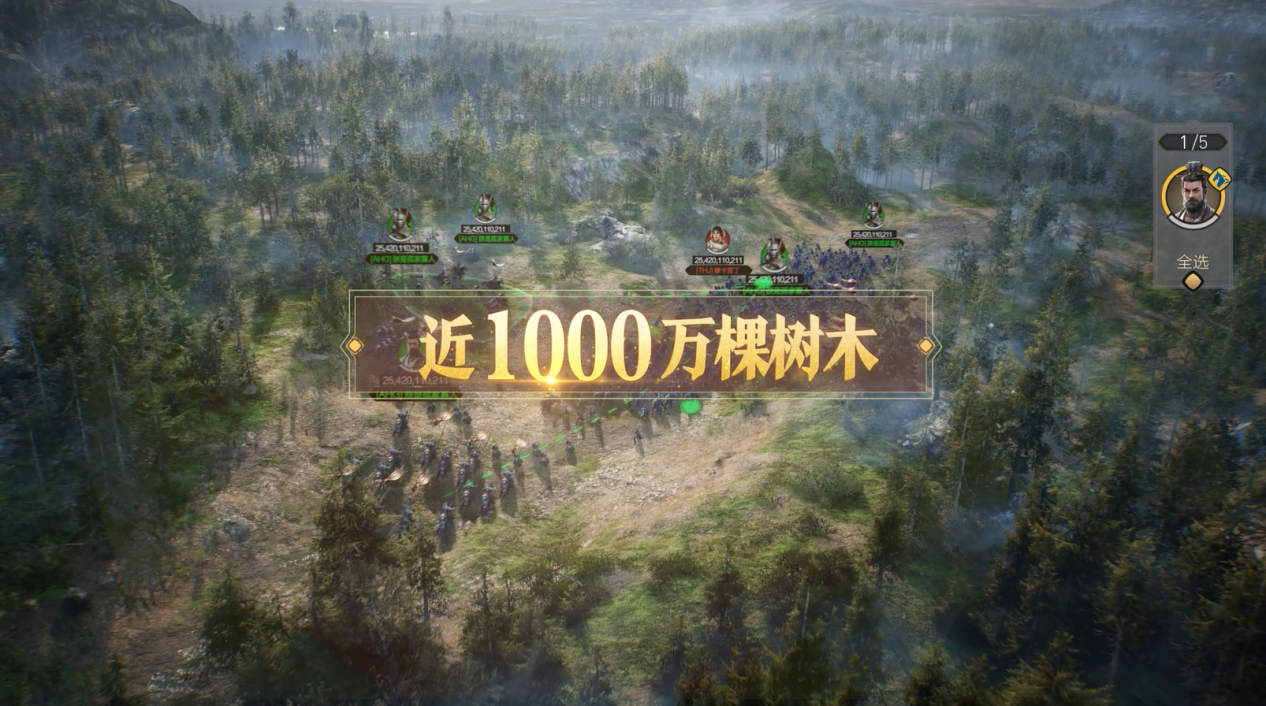 宣传视频还展示了游戏中地形的设计,游戏大地图上存在超过1万座的山川、1000万棵树木。不仅山川河流随着地貌的不同而形态各异,树木种类都会随着地貌而改变。