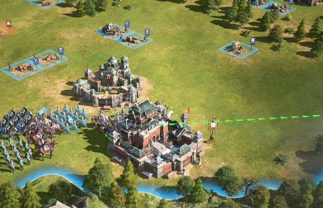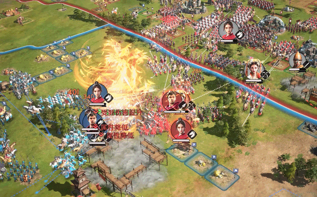 在《重返帝国》里,无需走格子铺路,取而代之的则是灵活的自由行军系统。玩家可以自由拖拽部队在大地图上移动,实现蛇皮走位、反向拉扯等操作。