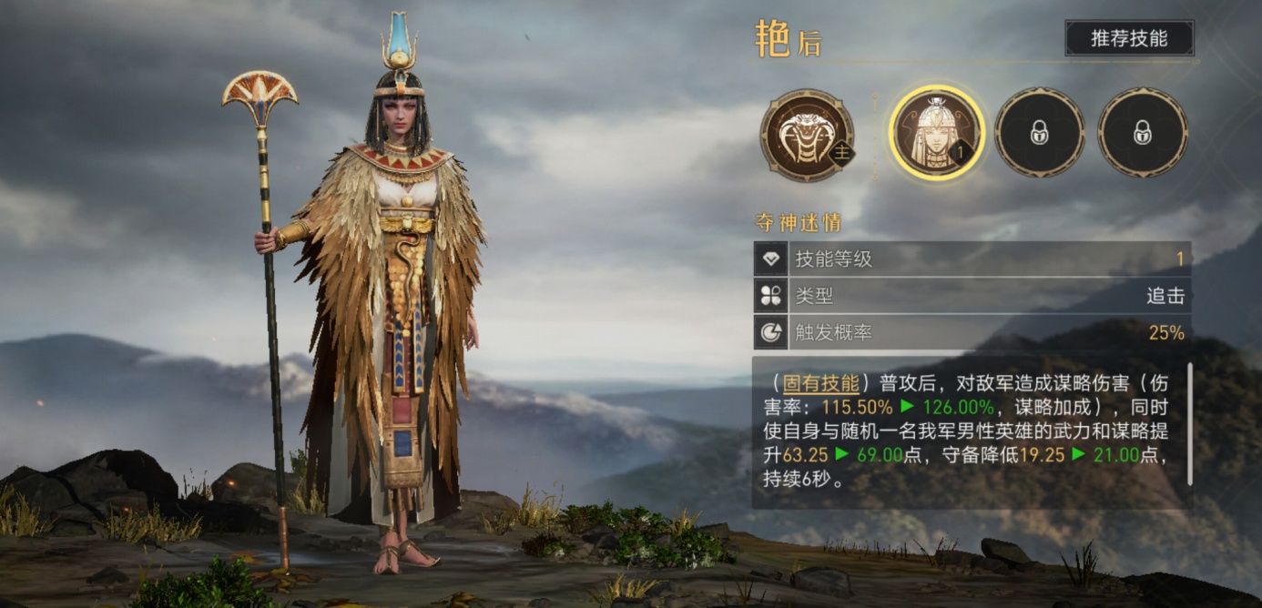 主将位,主将技倾国俘心怒气消耗低,在造成高额伤害的同时,还能降低敌方男性阵容伤害;固有技能夺神迷情,造成伤害之余能够提升自己与男性队友的武力和谋略,降低守备。
