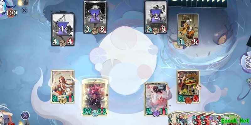 玩法:座敷童子负责持续续航,青坊主通过蹭血恢复生命,拥有禅心后无需担心手牌不足。酒吞童子在有费用时优先攻击金鱼姬以叠加攻击力,获得鬼王后可直接击杀金鱼姬。青蛙作为多功能式神,可在酒吞完成斩杀后登场控场,配合骰子炸弹补充伤害,提升整体输出效率。