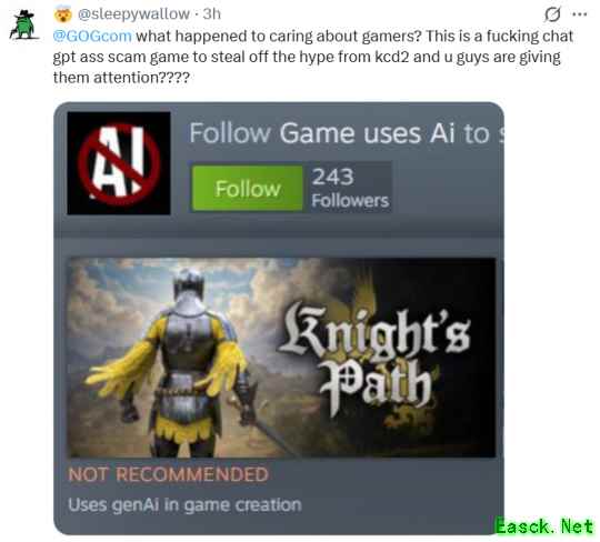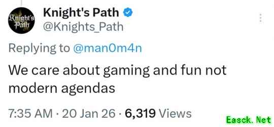 对于某组织要求加入某元素,《骑士之路》官推的回应脑回路就很正常,简直要气死某组织:我们关心的是游戏和好玩,而非现代议程