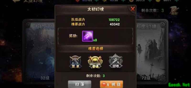 太虚幻境分为太初、太古、太虚三章,分别于32级、52级、72级开启,是每日获取武魂石的重要方式。